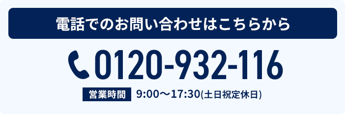 営業時間9:00〜17:30(土日祝定休日)